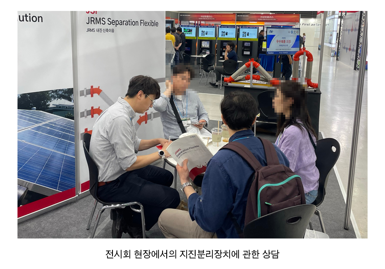 지난주, 6월 중순임에도 너무나 무더웠던 날씨였습니다. 그런 날씨에도 불구하고 양재 aT센터에서 개최한 <2024 소방방재기술산업전>에서 많은 분들이 JRMS 부스를 방문해주시고 PVStop 제품과 JSF 지진분리장치에 관심을 가져주셔서 너무나 감사했습니다. 매년 전시회라는 방법을 통해 여러분과 소통을 나누고 있지만 이렇게 직접 뵙고, 소중한 의견과 궁금증을 직접 들을 수 있다는 것은 매번이 모두 저희에겐 너무나 새롭고, 소중하고, 뜻깊은 경험입니다. 저희가 용기내어 건네는 인사와 준비한 카다록을 받아주시고 함께 인사나눠주셔서 너무나 감사합니다. 항상 여러분의 의견에 귀기울이고 가까이서 노력하는 JRMS가 되겠습니다. 감사합니다.