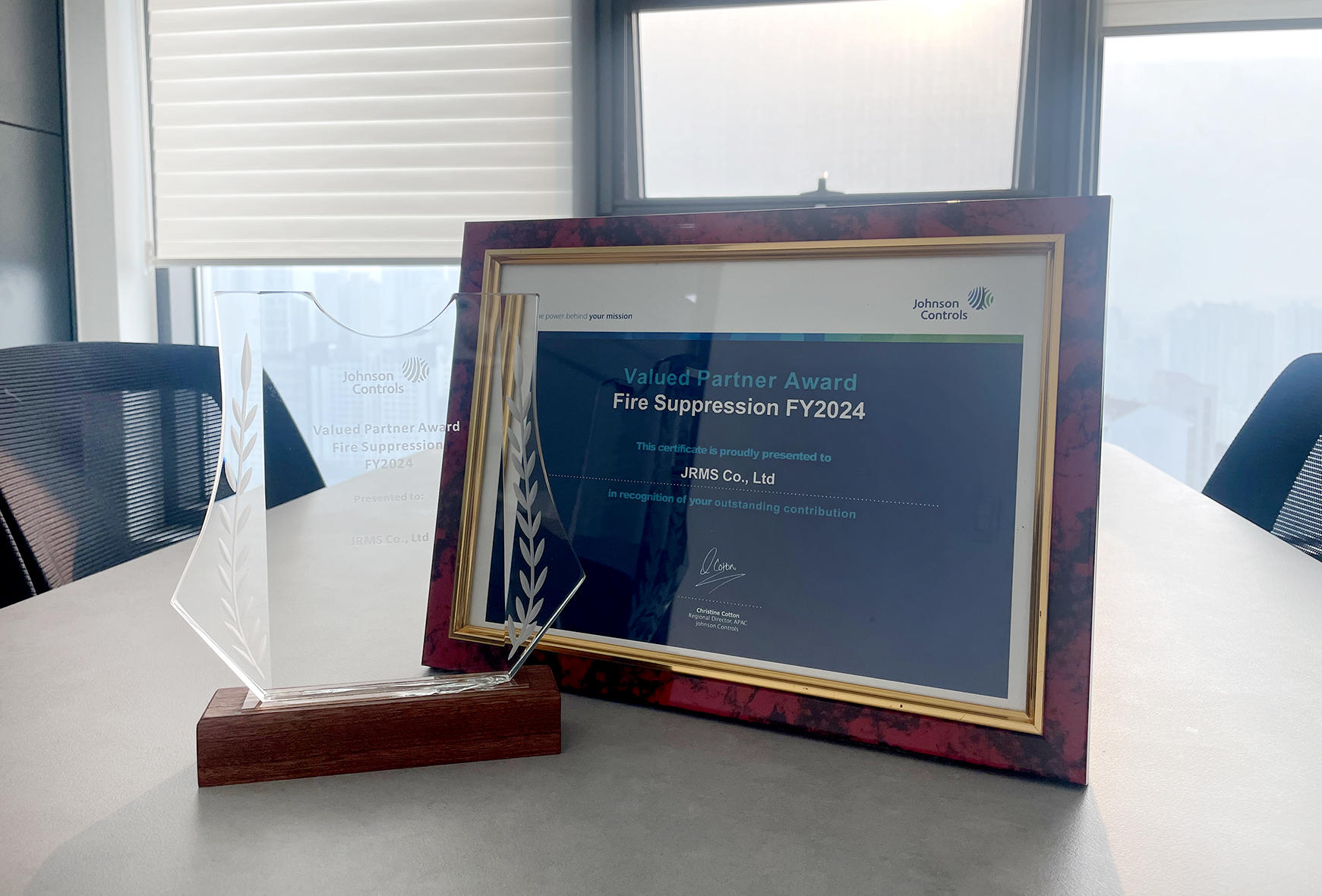 JRMS는 글로벌 브랜드 JCI(Johnson Controls International)로부터 Valued Partner Award–Fire Suppression FY2024를 수상하였습니다. 이 상은 JRMS가 현재까지 보여준 가능성과 성장 잠재력을 높이 평가받아 수여된 것으로, JCI와의 협력 관계에서 앞으로 더 큰 역할을 할 수 있는 파트너로 인정받았음을 의미합니다. 이번 수상을 계기로 JRMS는 기술력과 신뢰를 바탕으로 글로벌 소방 안전 시장에서 더욱 경쟁력을 갖춘 기업으로 성장할 것을 다짐합니다. 앞으로도 혁신적인 솔루션과 품질 향상을 통해 고객과 파트너사의 기대에 부응하겠습니다. 감사합니다. |