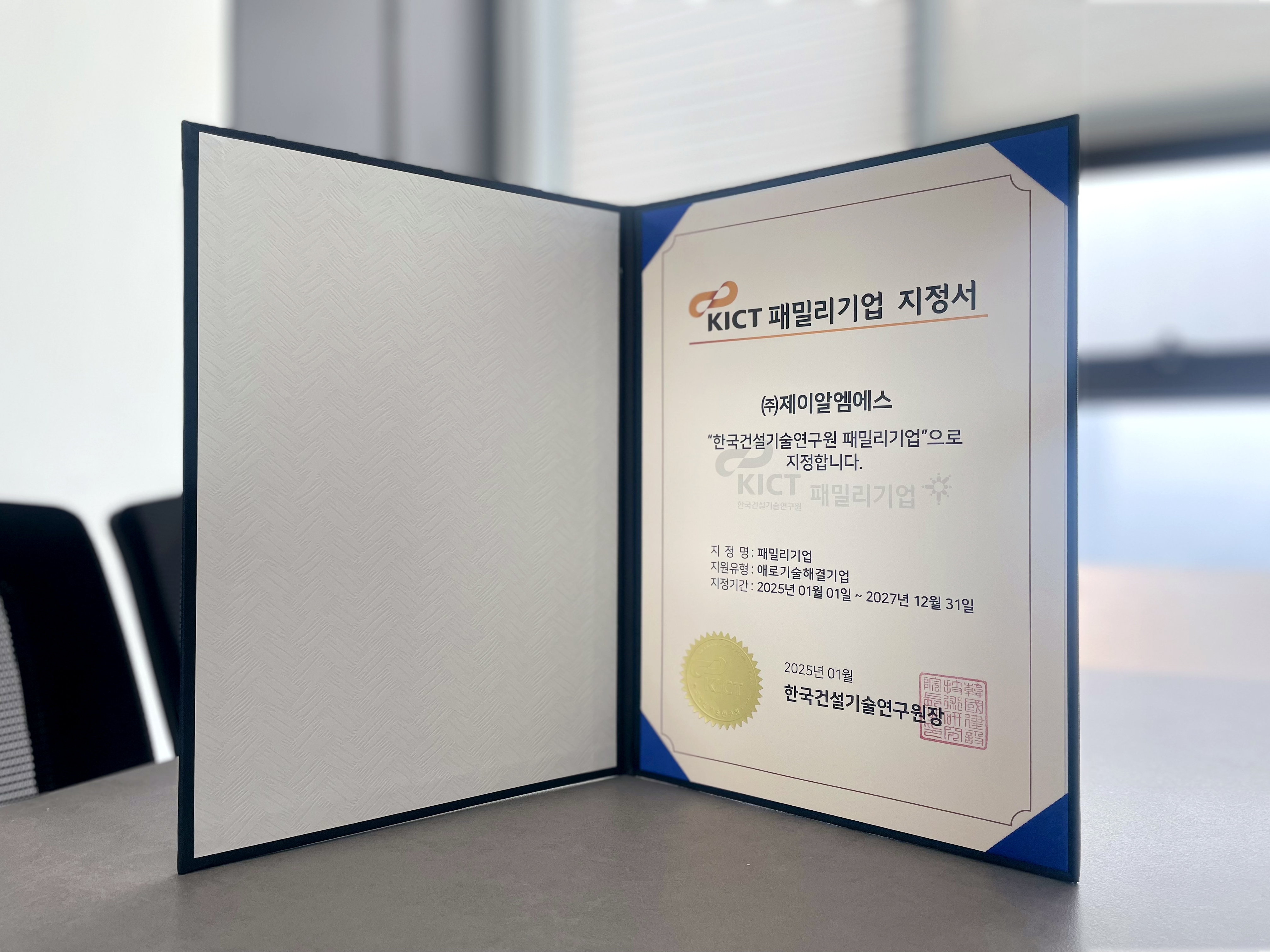 JRMS has been designated as a "Family Company" by the Korea Institute of Civil Engineering and Building Technology (KICT). KICT operates the "Family Company" program to support the growth of small and medium-sized enterprises and promote technological innovation in the construction and environmental technology sectors. This program categorizes companies into three groups: "Problem-Solving Companies," "Regular Support Companies," and "Intensive Growth Companies," providing tailored support to meet their specific needs. JRMS has been designated as a "Problem-Solving Company" under KICT's Family Company program. This designation means that JRMS can receive various forms of support from KICT to effectively address technical challenges and enhance its technological capabilities. |