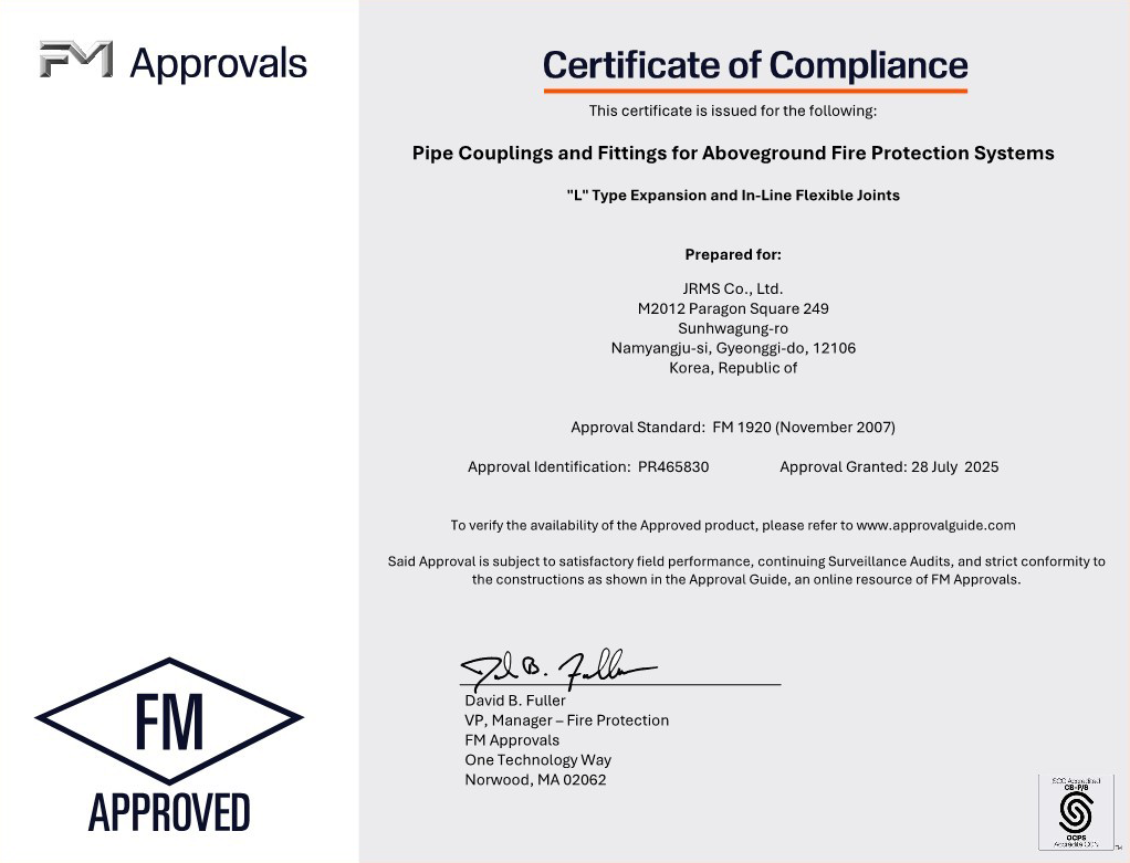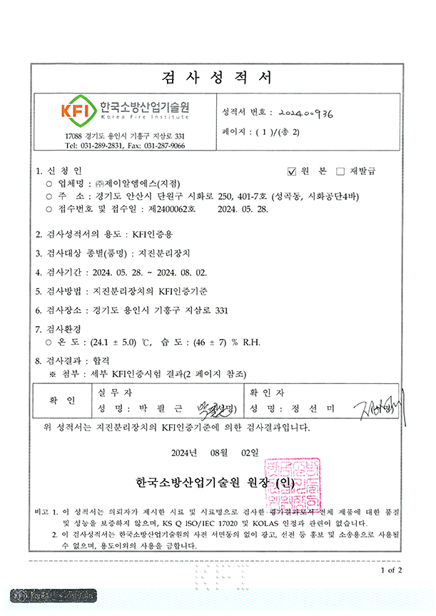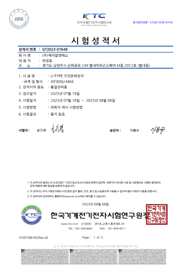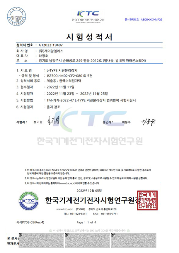 - 인증 변위량±25mm, ±51mm, ±102mm, ±203mm, ±305mm, ±406mm, ±610mm