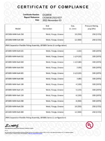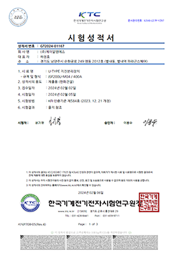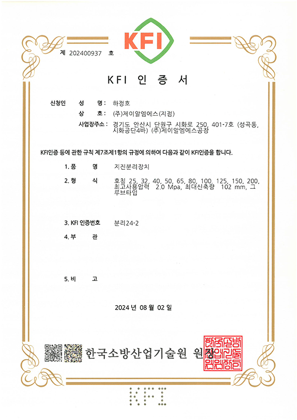- 변위량 ±25mm~±610mm의 변위까지 사용 최고압력 20K로 인증되었다.(국내 최고 압력 및 변위량)