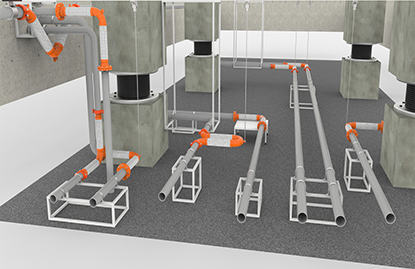 V-LoopJRMS의 V-Loop Type은 다른 Type에 대비 수두율이 적고, 아래와 같이 Single 배관이나 Multi 배관의 복렬 Lay-out에 간섭없이 효과적으로 적용할 수 있어서 복잡한 복렬 배관이 지나가는 구간의 설치에 용이한 구조입니다.